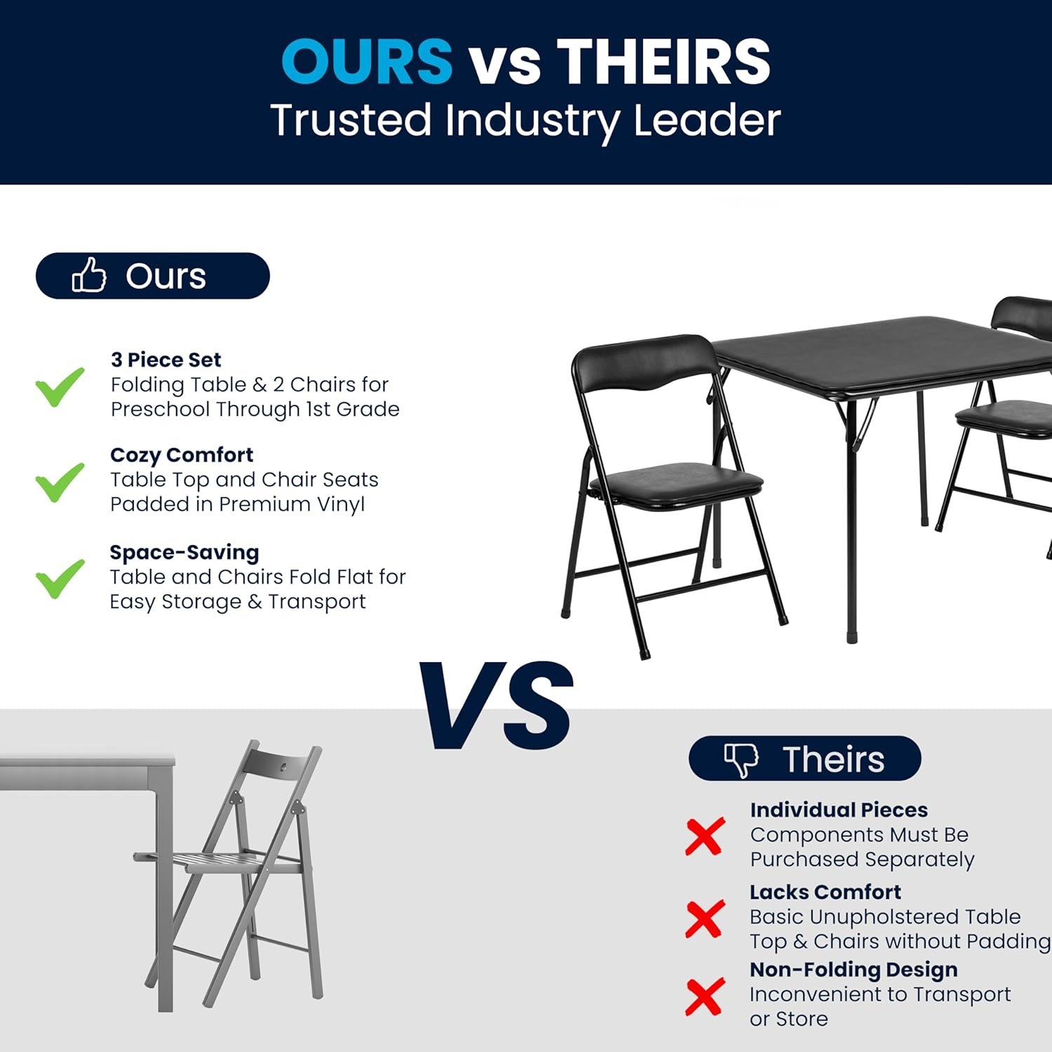 - All-in-One Convenience: The set includes a square folding table and two child-sized chairs—ideal for use as a daycare furniture solution, activity table, or classroom table.