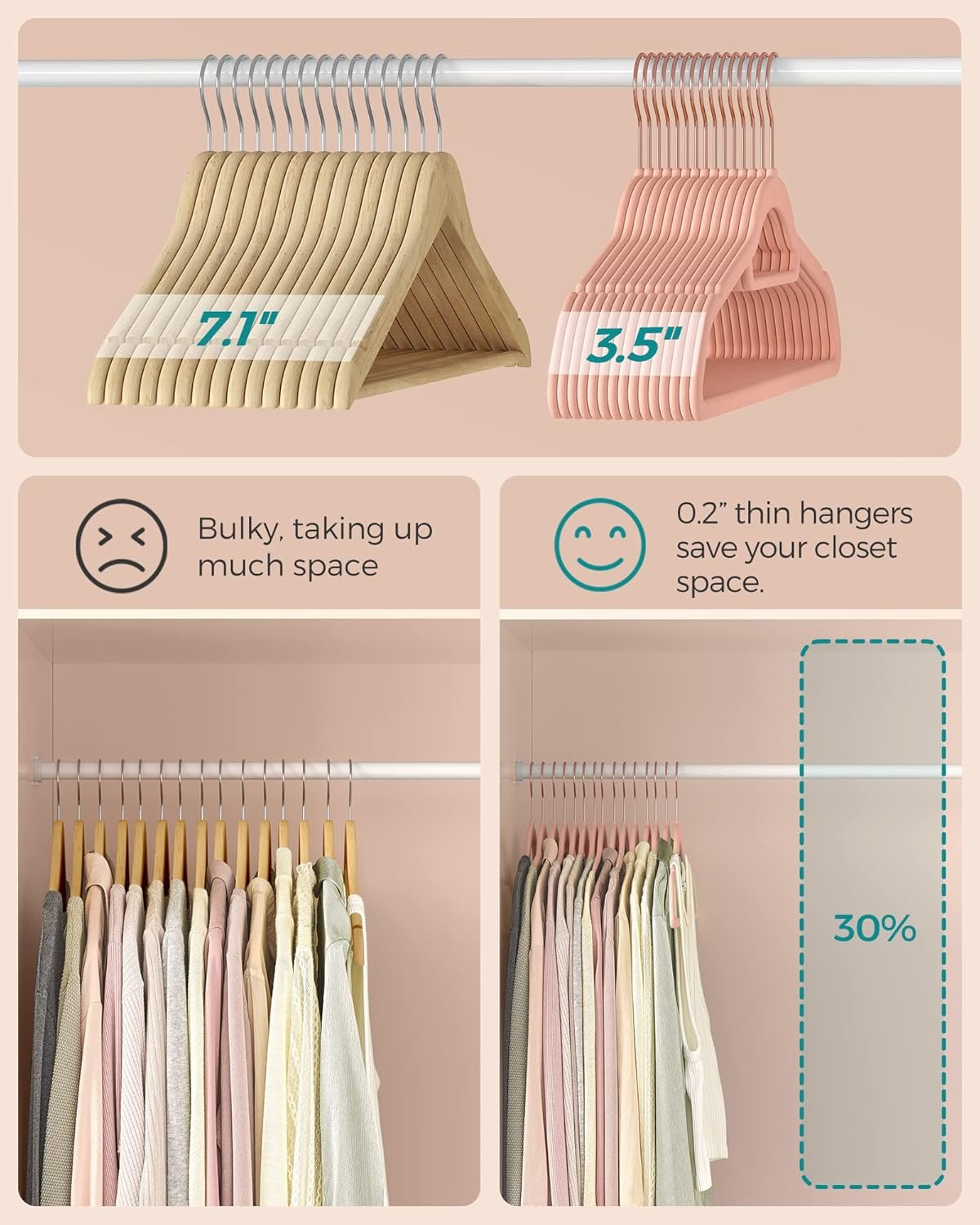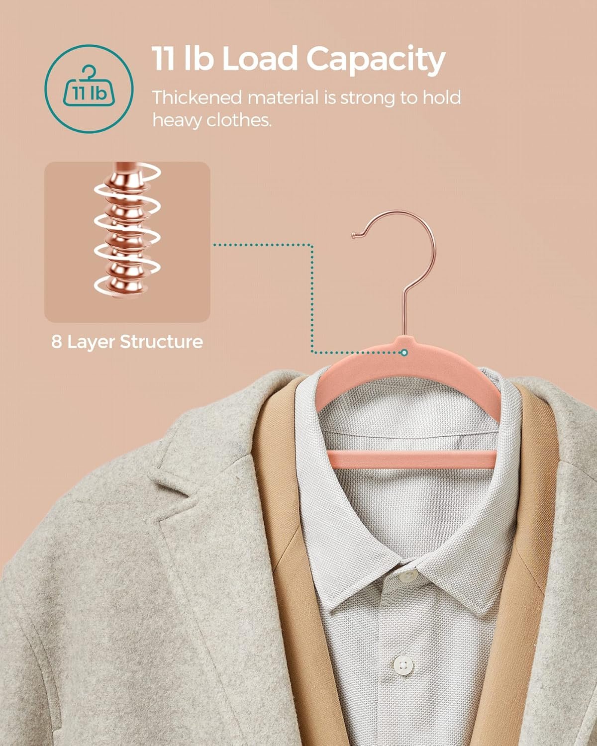 Compared to popular alternatives like Amazon Basics Slim Velvet Hangers and Zober Rose Gold Hangers, the SONGMICS option stands out for its consistent quality control and eye-catching coral pink finish. While Amazon Basics offers similar space saving, it lacks the vibrant color options and sometimes uses a less durable ABS core.